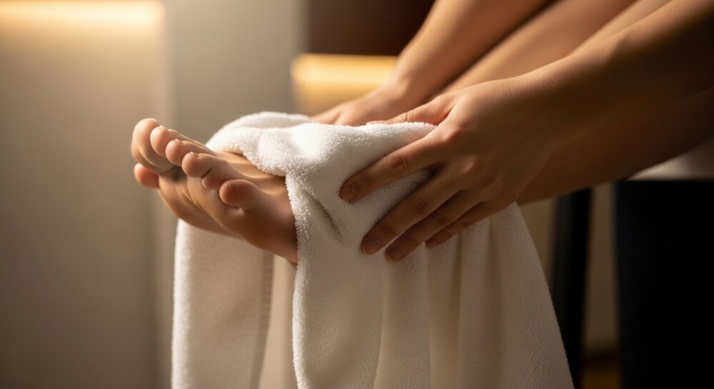 スピリチュアルの世界では、悪い気(厄)は下に溜まりやすく、特に「足の裏」から入りやすいと言われています。せめて足先だけでも洗うか、濡れたタオルでサッと拭くだけで、邪気を払う効果があります。