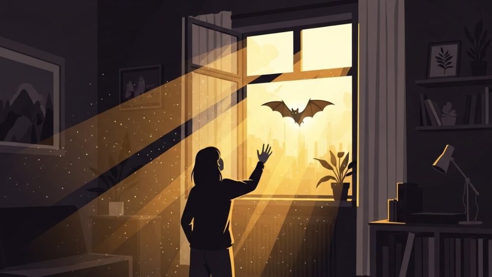 玄関は、新しいエネルギーの入り口です。そこでコウモリを見るのは、あなたの人生に、新しいチャンスや人間関係、豊かさといった「幸運」が、もうすぐ訪れることを告げるサインです。新しい扉を開く準備をしましょう。
