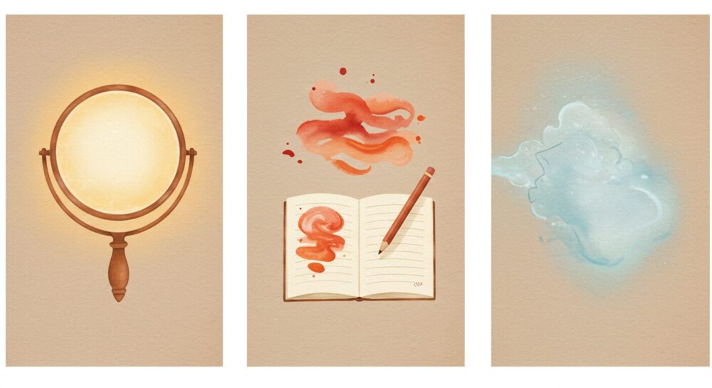鏡を見るのが辛いかもしれません。でも、勇気を出して、鏡の中の自分の目を見てください。そして、「赤くたって、大丈夫。どんなあなたでも、私が一番の味方だよ」と、優しく語りかけてあげてください。他人の視線ではなく、あなた自身の愛の視線で、肌を包み込むのです。この自己受容が、最高の鎮静剤となります。